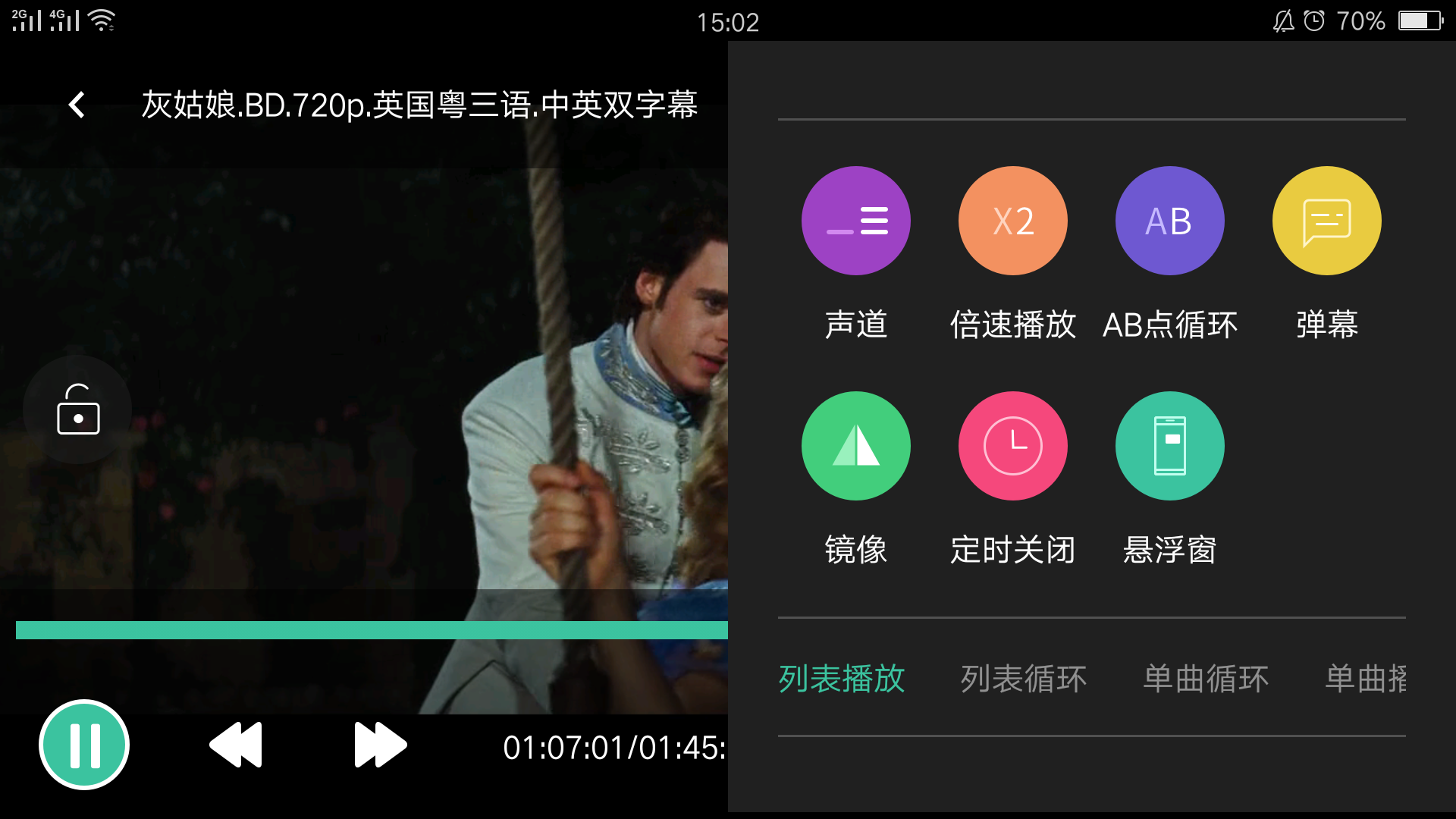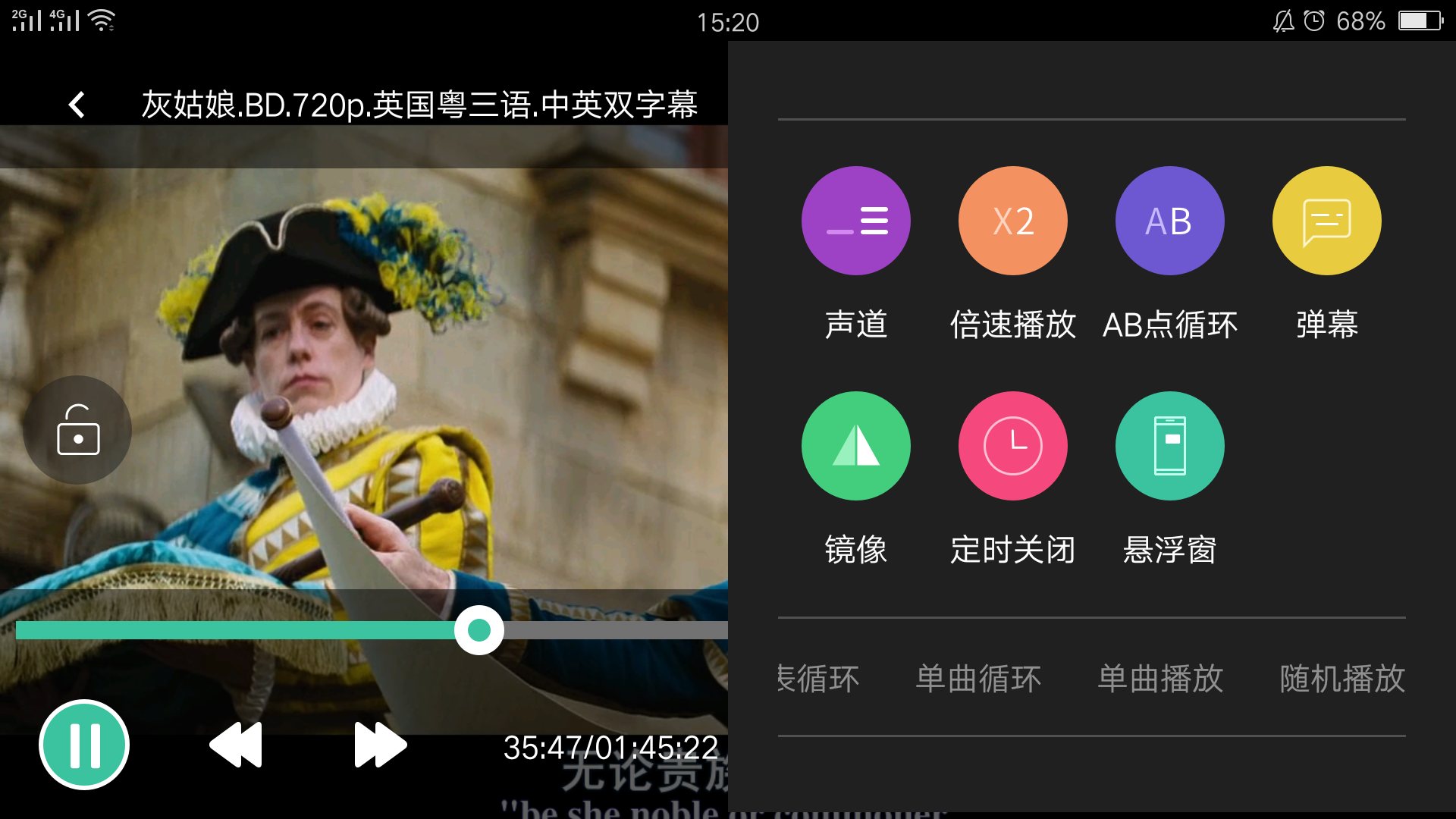 Hard-Decoding mode, press the [♫] icon in the upper right corner of the player interface , you can select audiotrack and decode mode.